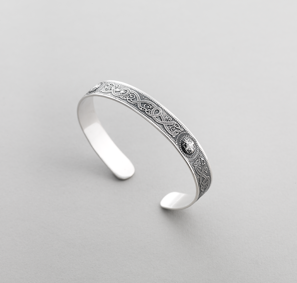 Decorative serpents are entwined within this distinctive oxidised bangle, symbolising renewel of life and eternity of spirit. The design was inspired by the 8th century St. Martin's cross which stands in the grounds of Iona Abbey.