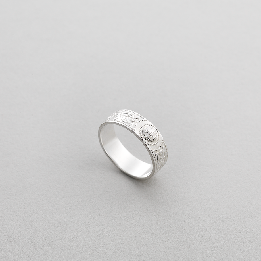 Decorative serpents are entwined within this distinctive polished ring, symbolising renewel of life and eternity of spirit. The design was inspired by the 8th century St. Martin's cross which stands in the grounds of Iona Abbey.